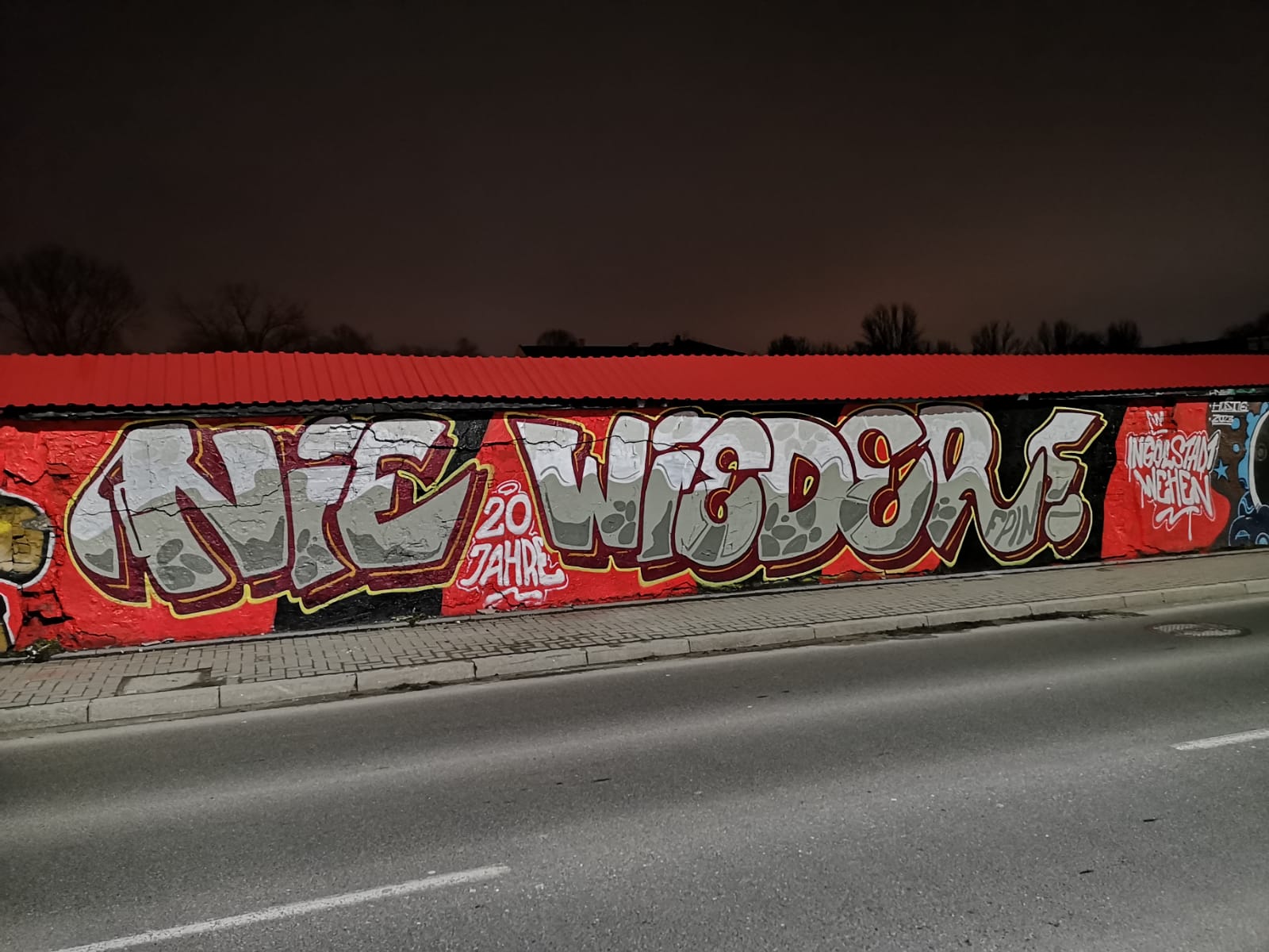 Nachmittags erkundeten wir dann noch das jüdische Viertel Krakaus. Um einen Eindruck von jüdischem Leben in der Gegenwart zu bekommen, aßen wir zu Mittag in einem Restaurant mit authentischer Israelischer Küche. Unter Anleitung von Flo vom FP Ingolstadt, fand dann noch eine Graffiti-Malaktion auf einer legalen Freifläche statt. Das Gesamtbild wurde am 27.01.24 zum 20 jährigen Jubiläum des „!Nie Wieder Gedenktages“ auf dem Instagram Kanal vom Fanprojekt Wehen Wiesbaden veröffentlicht.