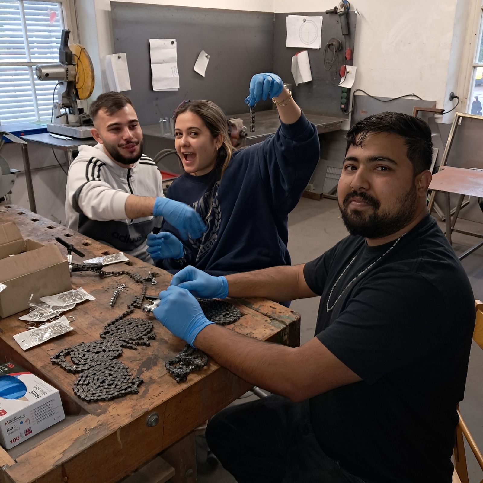 Während der Projektwoche arbeiteten die Wiesbadener Teilnehmer:innen vormittags in den Werkstätten von „Job Ahoi“ mit. Spannend war die Erkenntnis, dass die Arbeitszeiten und Strukturen im Vergleich zu Wiesbaden durchaus unterschiedlich sind – und dennoch viele Gemeinsamkeiten in den Herausforderungen junger Menschen bestehen.