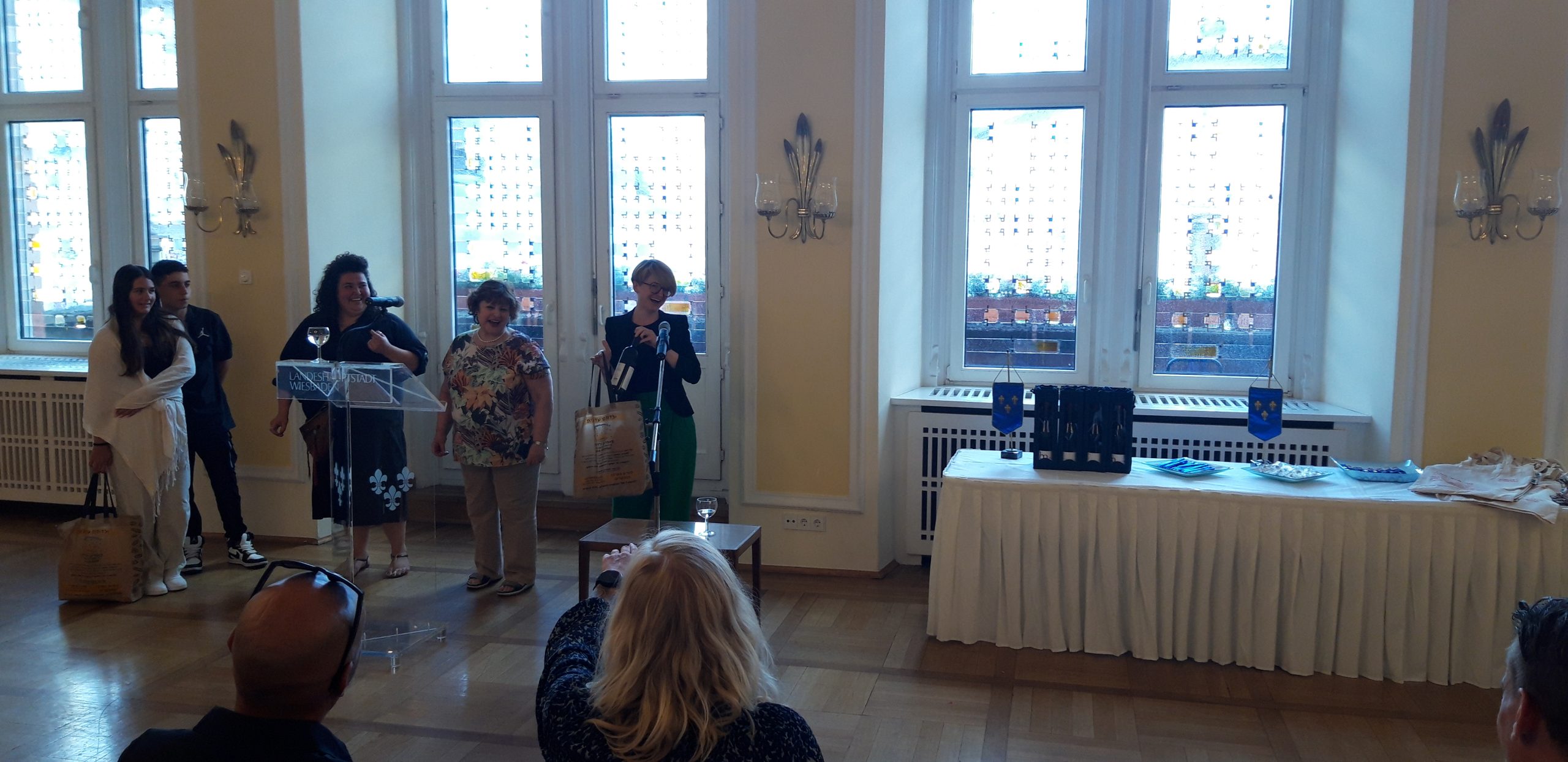 Eine Reise nach Köln, Achterbahnfahrten und Besuche in der Moschee und in der Wiesbadener Synagoge erwarten die Jugendlichen der IGS Rheingauviertel und des Kinderheims „Neve Hanna“ aus Kiriat Gat in Israel in den Kommenden Tagen. Das die Jugendlichen beider Länder schon eine Gemeinschaft bilden – sie konnten sich bereits durch Videobotschaften kennenlernen- war deutlich spürbar beim Rathausempfang durch die Sozialdezernentin Frau Dr. Becher . Sie wünscht eine spannende Zeit in Wiesbaden und dass die geschlossenen Freundschaften weiter wachsen in der Zukunft und wünscht schon jetzt einen guten Flug nach Israel im Oktober.