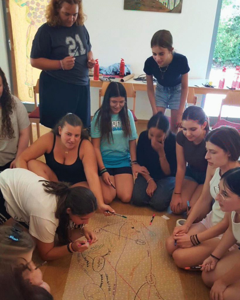 Nach der Ankunft im Heidehäuschen bezogen wir unsere Zimmer und starteten direkt im Anschluss mit einem gemeinsamen Kennenlernspiel und einem ersten Workshop. Noch am selben Abend saßen Mädchen aus Wiesbaden und Kryoneri beieinander und spielten, lachten und unterhielten sich, als hätten wir uns schon viel länger gekannt.